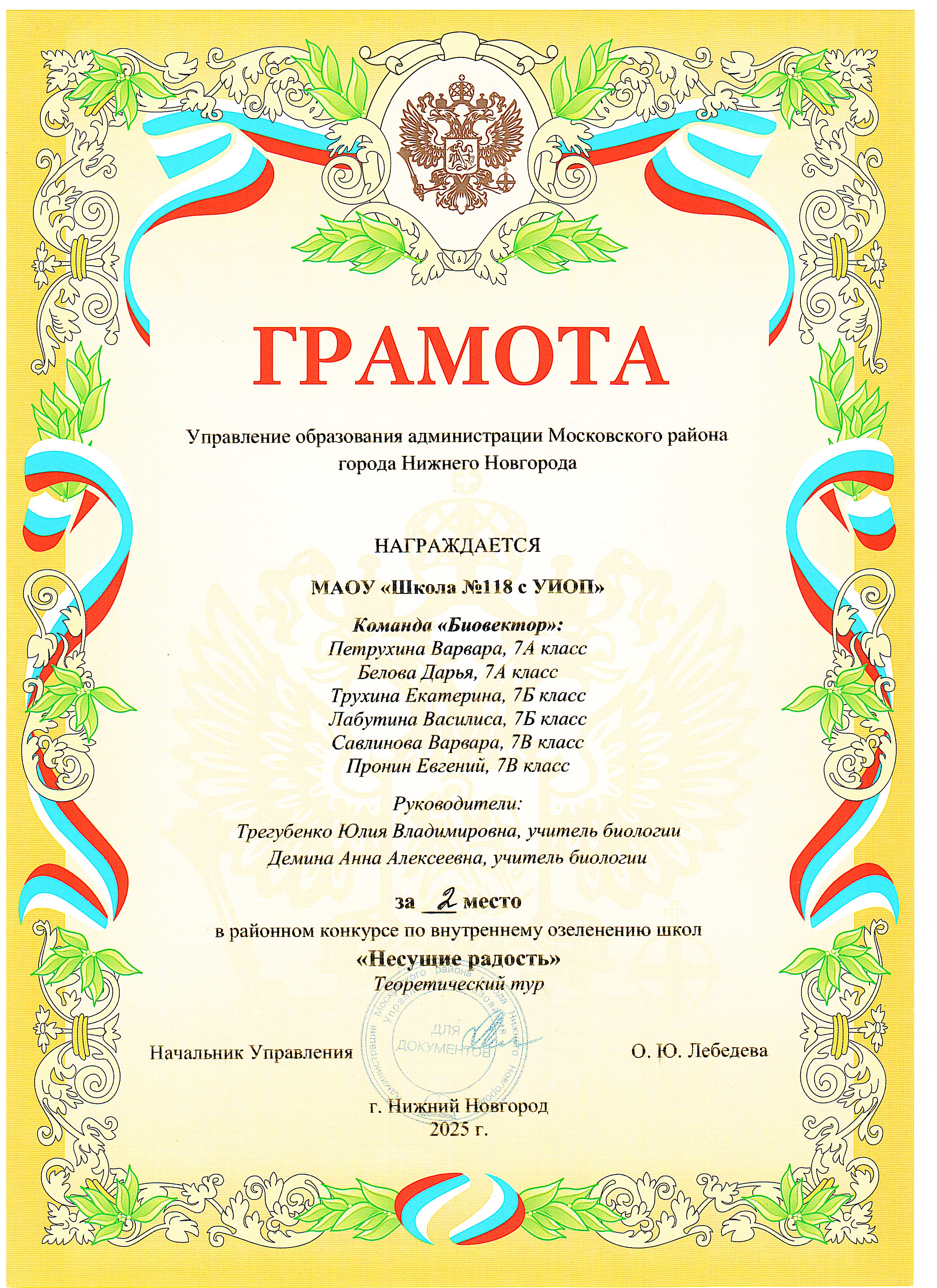 | Районный фестиваль экологических агитбригад "Наш дом-Нижний Новгород" | волонтерский отряд "БИО вектор" |