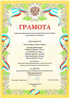 | Городской смотр детских общественных объединений и организаций | РДОО "Апельсин" - 1 место | Григорьев Н.А. |