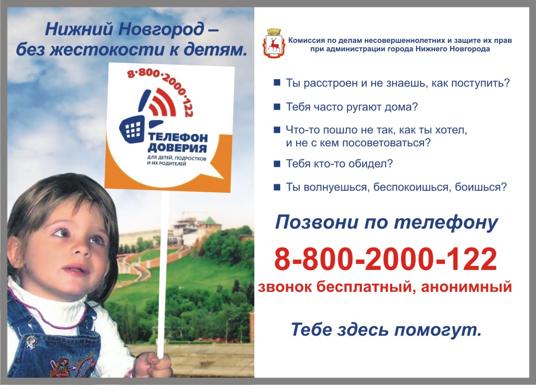 ТЕЛЕФОНЫ ДОВЕРИЯ, действующие на территории города Нижнего Новгорода